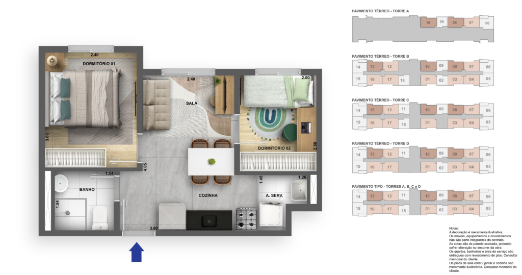 O condomínio conta com lazer completo, incluindo piscinas, academia, coworking, salão de festas, churrasqueira, sport bar, brinquedoteca, playground, pet place, redário, lavanderia compartilhada, easy market e muito mais. Tudo pensado para oferecer bem-estar, convivência e praticidade no dia a dia.